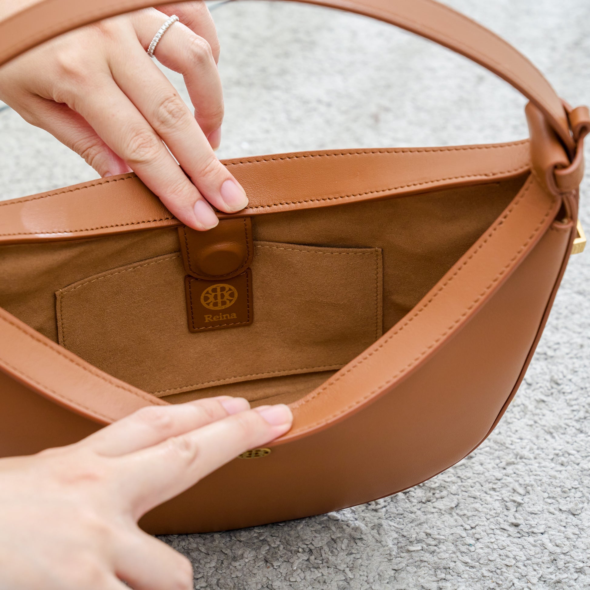 The Venus bag blends soft femininity with a touch of edgy sophistication. Crafted in a half-moon silhouette from full-grain and cow leather, it’s perfect for effortless everyday style or when you want to add a playful accent to your look.